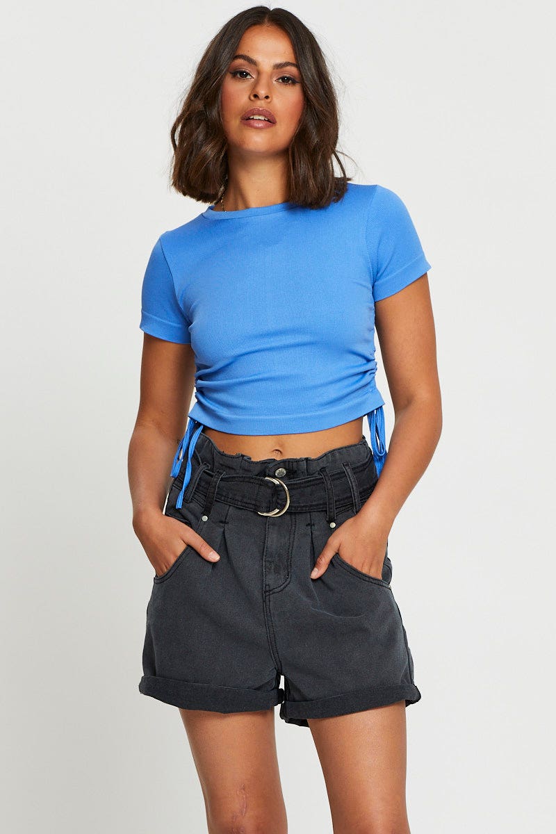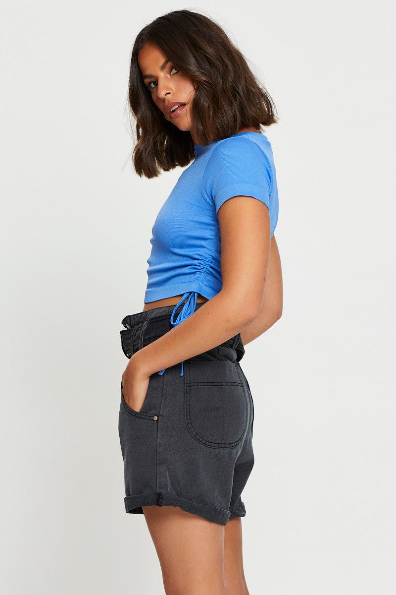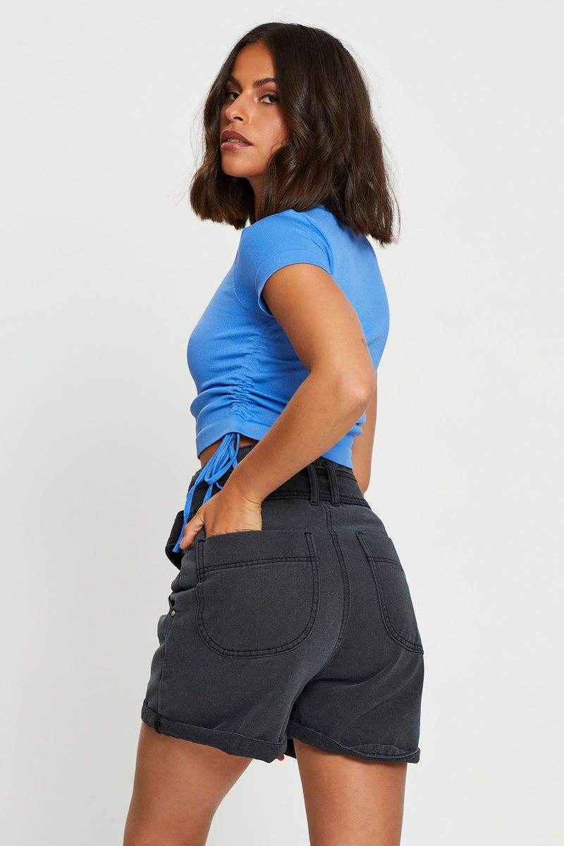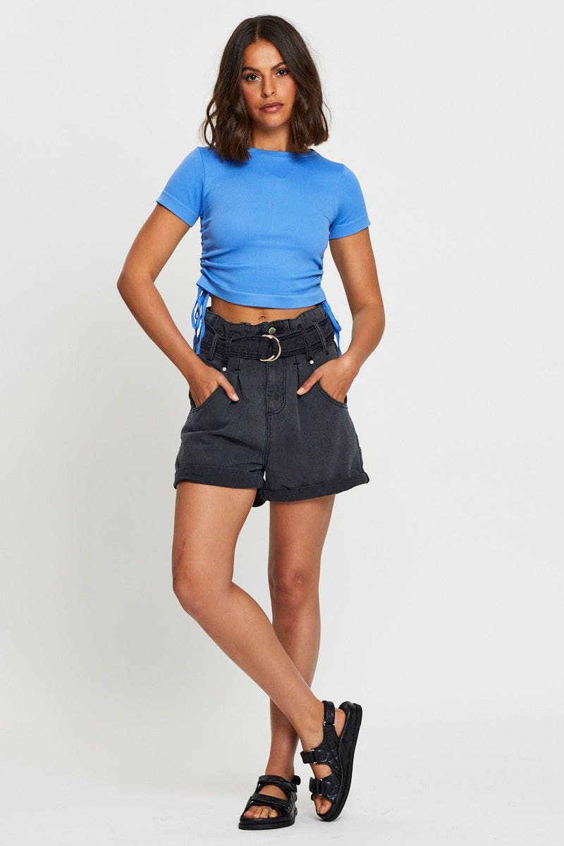 Black Belted Denim Shorts High Rise