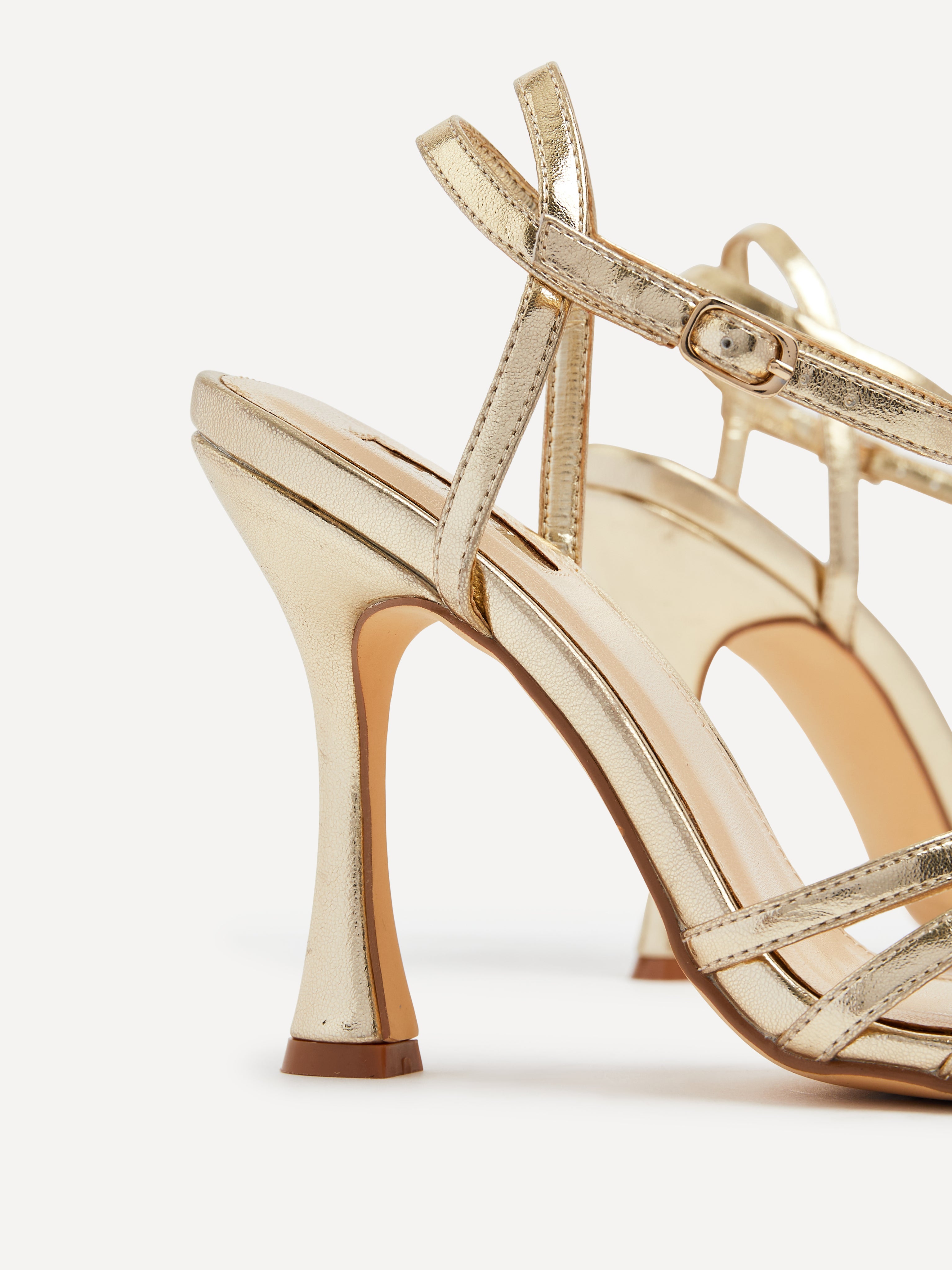 Discover Serena, the perfect soft faux leather sandal for any formal occasion. This stylish high-heeled sandal features a caged front strap that adds a modern flair to any look. With its timeless design, Serena is the ideal companion for weddings and parties.